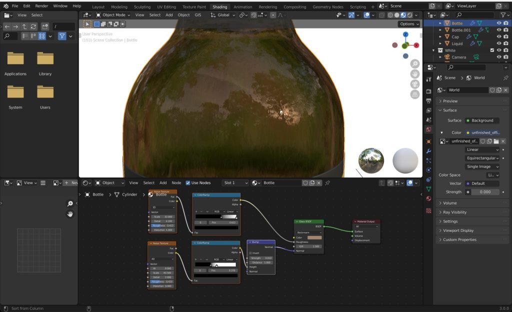 悪くないのですが、表面がツルツルしすぎています。実際の瓶は細かく波打ったようになっているのでバンプを追加していきます。